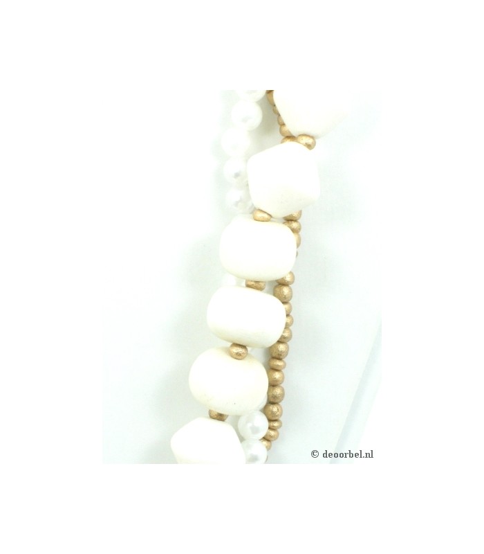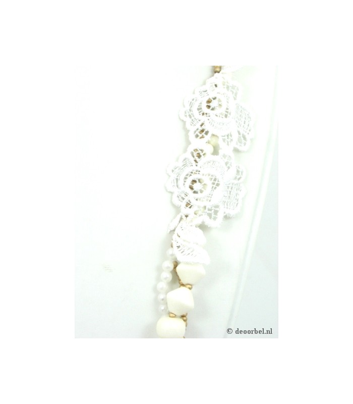 Wit met goudkleurige 3 strengs halsketting met kanten bloem. Lengte van de halsketting is ᅠ80 cm.