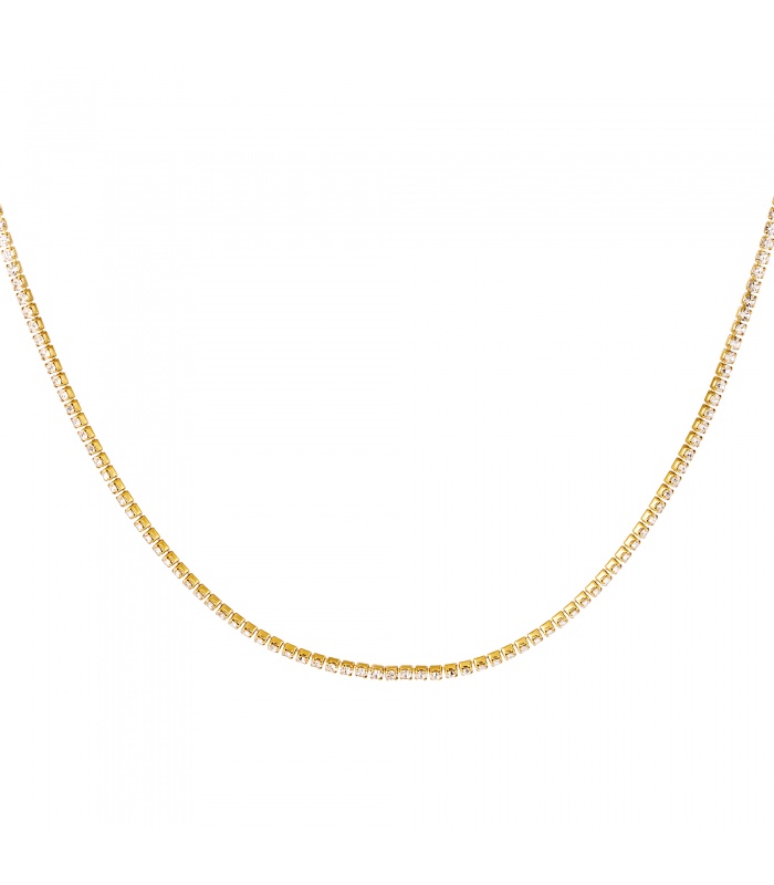 Goudkleurige halsketting bezet met zirkoonstenen.