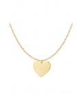 Goudkleurige halsketting met een harten bedel en stras steentjes.
