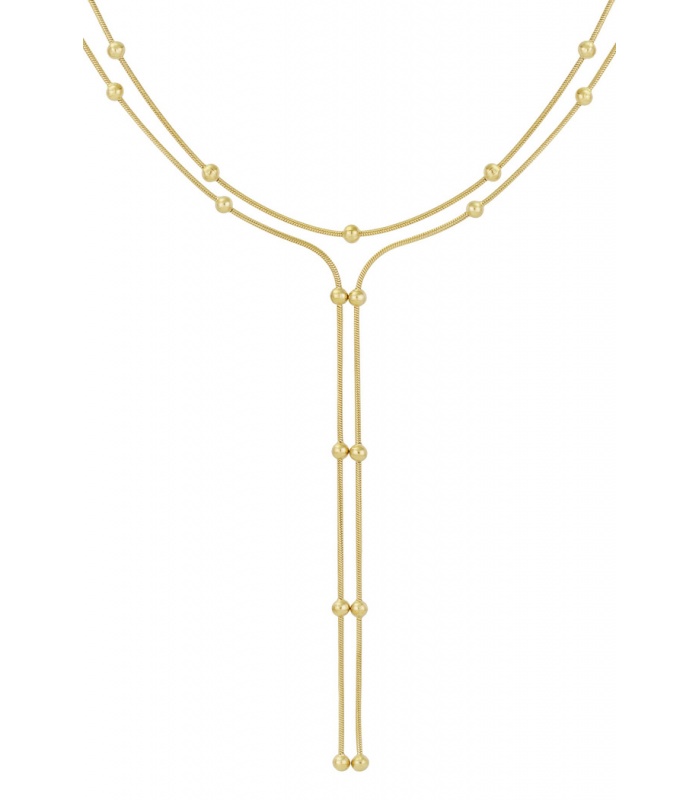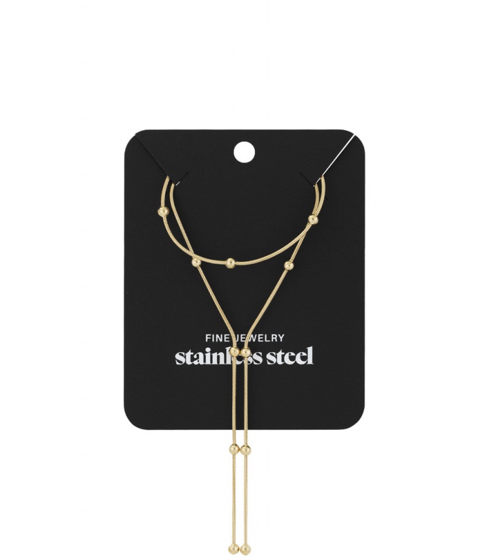 Deze goudkleurige halsketting met kleine bolletjes biedt een verfijnde en minimalistische uitstraling. Het delicate ontwerp maakt het een veelzijdig sieraad dat zowel afzonderlijk als in combinatie met andere kettingen gedragen kan worden. De bolletjes voegen een subtiel accent toe aan je look, perfect voor zowel dagelijkse outfits als speciale gelegenheden.