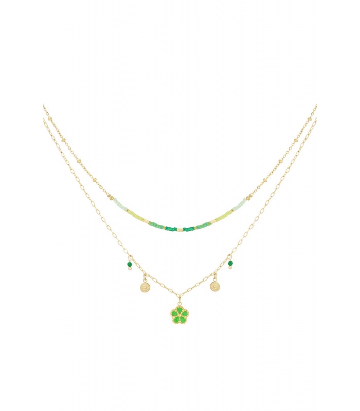 Waarom kiezen voor een halsketting met groene bedels? Groene accenten symboliseren balans en rust, en voegen een unieke touch toe aan je look. Deze ketting is perfect te combineren met aardetinten zoals beige en bruin, maar staat ook prachtig bij contrasterende kleuren voor een gedurfde fashion statement.