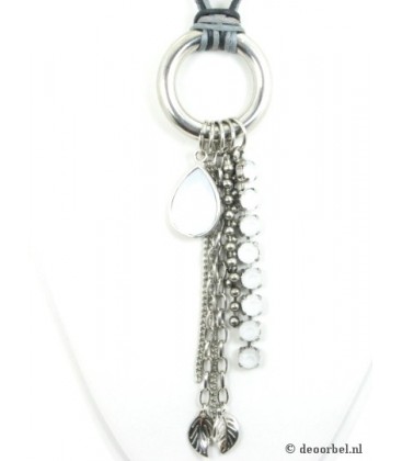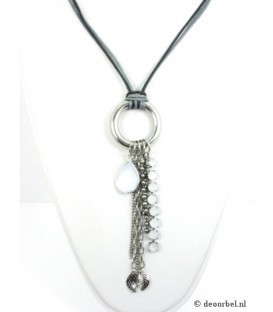 Grijze koord ketting met metalen bedels en acryl kralen (