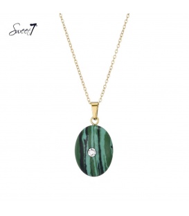 Goudkleurig korte ketting met ronde hanger van synthetisch malachiet