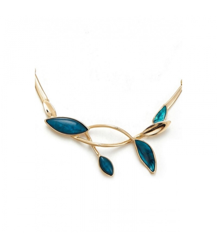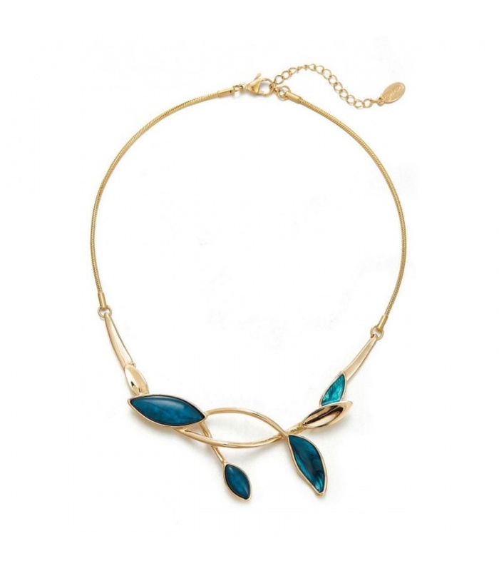 Deze goudkleurige korte halsketting is een echte eyecatcher, met prachtige blauwe en groenige elementen die elegantie en frisheid uitstralen. De warme goudtint vormt een luxe basis, terwijl de gekleurde accenten een speels en verfijnd contrast bieden. Een must-have voor de modebewuste vrouw die houdt van een subtiel statement.