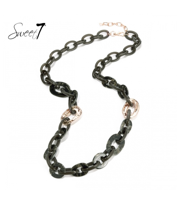 Hoe maak je jouw outfit in een keer krachtiger? Deze groene halsketting van Sweet7 combineert marmerlook schakels met goudkleurige accenten voor een trendy en luxe uitstraling. De grove schakels zorgen voor een stoer statement, terwijl de gouden details een vleugje elegantie toevoegen.