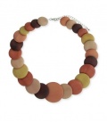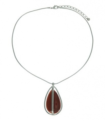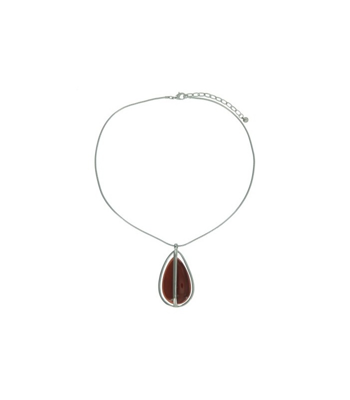 Zilverkleurige snake-chain korte halsketting met een oranje / rode druppelvormige hanger