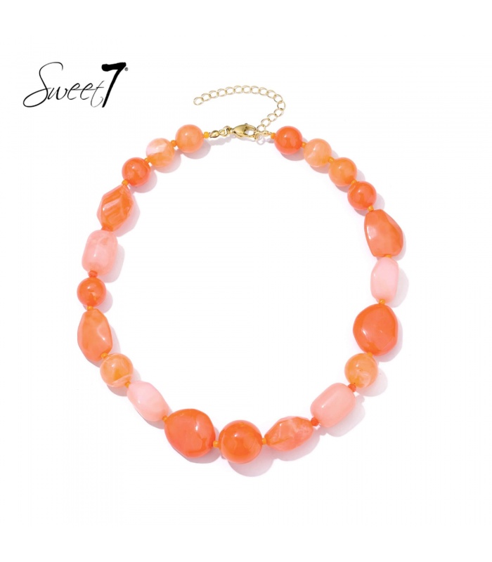 Wat als een halsketting direct je hele uitstraling opfrist? Deze halsketting in levendig oranje gekleurde tinten doet precies dat. De onregelmatige kralen geven een speels effect, terwijl de warme kleurtonen zorgen voor een zomers, krachtig statement. Ideaal voor wie durft op te vallen.