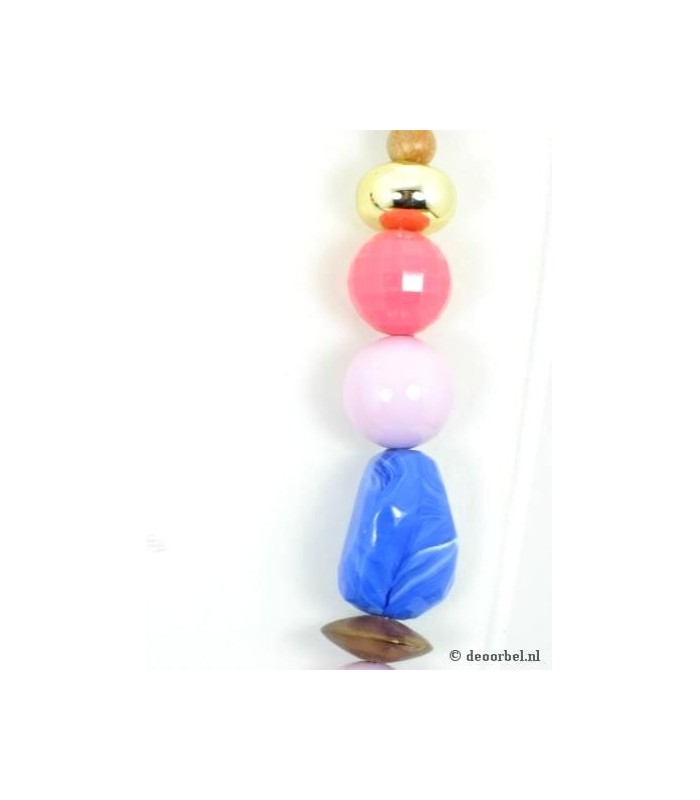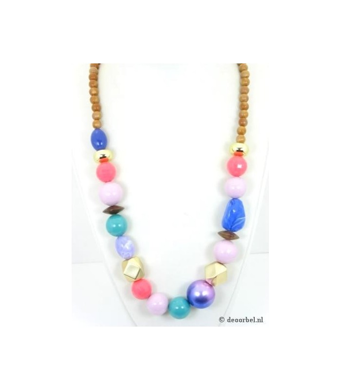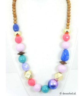 Roze lange halsketting met goudkleurige...