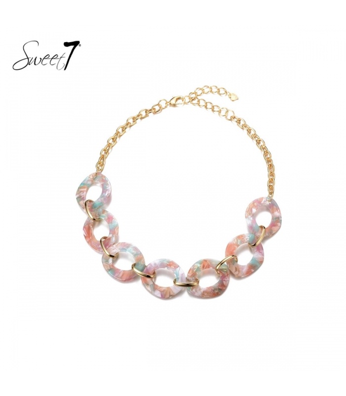 Deze gekleurde korte halsketting van Sweet7 is een echte eyecatcher. De ketting is voorzien van goudkleurige schakels en gekleurde elementen, wat zorgt voor een vrolijke en speelse uitstraling. Het unieke design maakt deze ketting perfect om te combineren met verschillende outfits. De ketting is van goede kwaliteit dankzij het gebruik van hoogwaardige materialen. Draag deze halsketting bij een zomerse outfit voor een kleurrijke touch of voeg hem toe aan jouw casual look om deze op te fleuren. De halsketting is ook een perfect cadeau voor een vriendin of familielid. Bestel deze mooie halsketting nu en voeg hem toe aan jouw collectie!