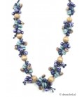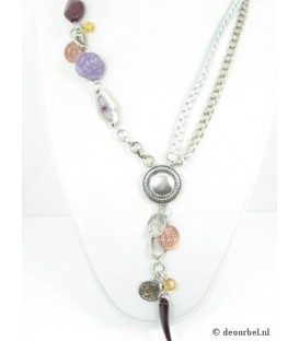 Zilverkleurige ketting metᅠpaarse accenten. Lengte van de halsketting isᅠ86 cm. Lengte van de hanger is 14 cm.