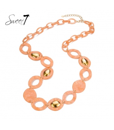 Deze elegante halsketting combineert koraalrode glaskralen met subtiele goudkleurige elementen. Het ontwerp straalt zowel warmte als luxe uit, waardoor het een veelzijdige aanvulling is op diverse outfits. De lengte van de ketting zorgt voor een flatterende val en maakt het geschikt voor zowel casual als formele gelegenheden.