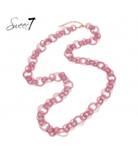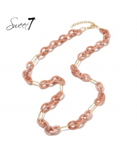 Roze lange schakel halsketting met goudkleurige elementen. Verfijn je look met deze roze lange schakel halsketting, prachtig afgewerkt met goudkleurige elementen. De zachte roze schakels contrasteren mooi met de warme gouden accenten, wat zorgt voor een speelse maar elegante uitstraling.