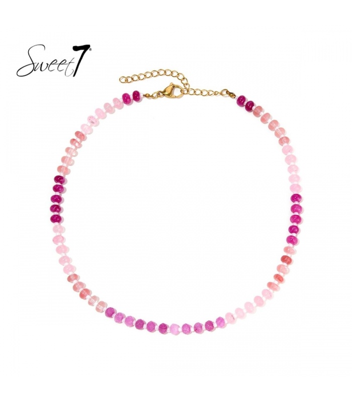 Deze veelzijdige halsketting kan solo gedragen worden voor een ingetogen look of gecombineerd met langere kettingen voor een trendy laagjesstijl. De roze tint harmonieert prachtig met neutrale kleuren zoals wit en grijs, maar kan ook een speels contrast vormen met diepere tinten zoals marineblauw of zwart.