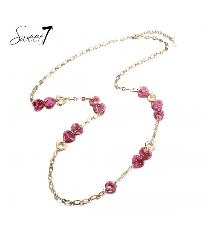 Roze met goudkleurige lange halsketting met harten valt op door zachte roze tint en subtiel goud. Sierlijk lang ontwerp dat prachtig valt over coltruitjes of V‑halstops. De hartjes bedels geven een speelse touch en maken het romantisch en trendy.