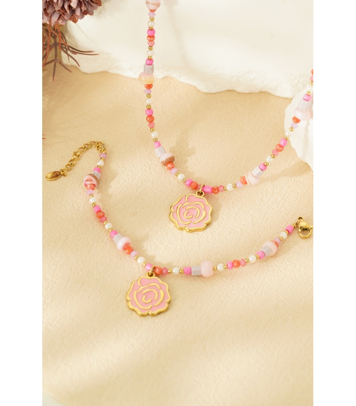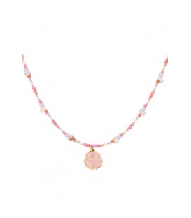 Deze ketting is een veelzijdig accessoire dat moeiteloos te combineren is met zowel casual als formele kledingstijlen. De roze tinten passen perfect bij neutrale kleuren zoals wit en beige, maar kunnen ook een frisse touch geven aan donkere outfits.