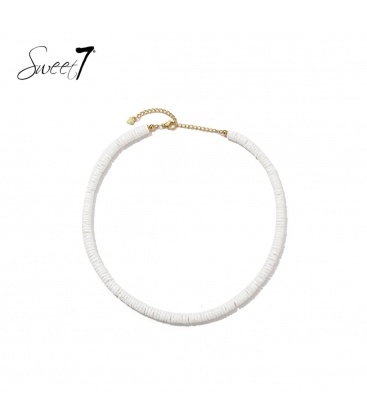 Onze adembenemende witte korte halsketting, met schelpkralen voor een natuurlijke uitstraling. Deze elegante ketting voegt een vleugje verfijning toe aan elke outfit, of je nu een dagje gaat winkelen of een avondje uit bent. De delicate schelpkralen zijn zorgvuldig geselecteerd en met vakmanschap geregen tot een tijdloos stuk dat je persoonlijke stijl accentueert.