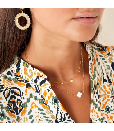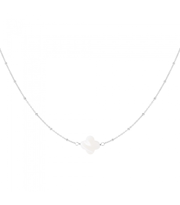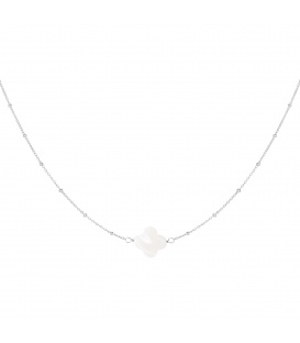 Hoe leuk is deze zilveren ketting met bedel in de vorm van een klavertje. De ketting is gemaakt van stainless steel in combinatie met zeeschelp; een leuke combi die zorgt voor een speelse uitstraling. Erg leuk om dit zilveren kettinkje te combineren met meerdere gouden kettingen. Ketting zeeschelp klaver is voorzien van een verstelbare sluiting waardoor de ketting gedragen kan worden vanaf 39 cm tot en met 44 cm.