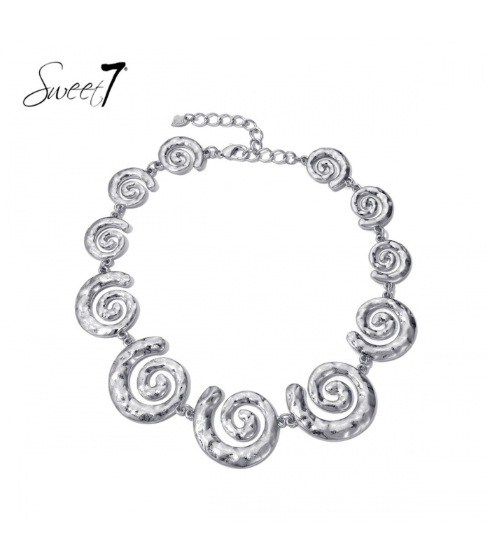 Zilverkleurige korte halsketting met mooie elementen geeft je outfit direct een fashion boost. Deze ketting is een elegant sieraad dat je look subtiel versterkt. Hij past perfect bij dagelijkse en feestje looks. Deze korte ketting werkt prachtig met coltruien en V‑halzen.