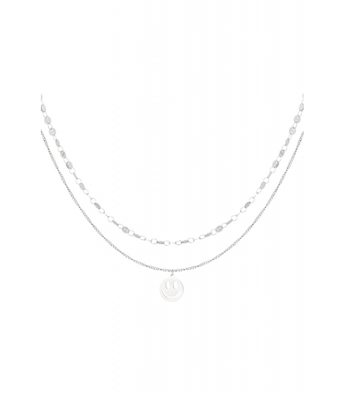 De dubbele lagen zorgen voor een gelaagd effect dat perfect samen gaat met andere kettingen of juist op zichzelf schittert. De smiley hanger brengt een glimlach naar elke outfit en is perfect voor dagelijks gebruik.