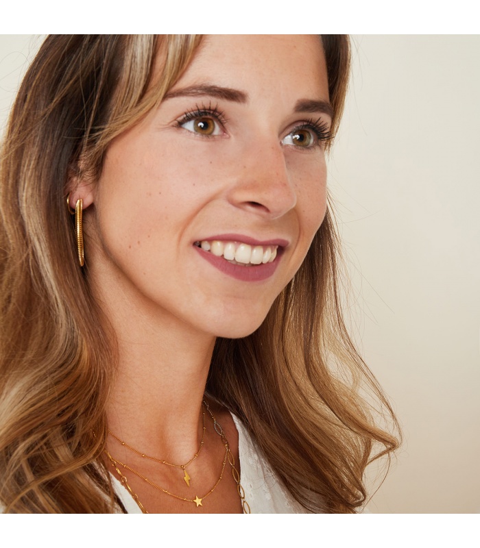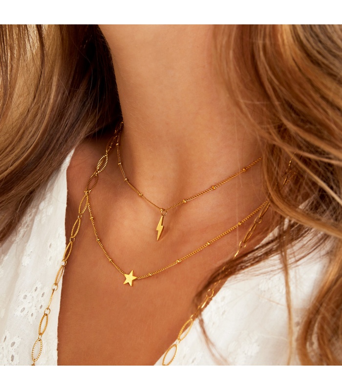 Wil je een subtiele ketting met een edgy twist? Deze fijne halsketting in zilverkleur met een kleine bliksemhanger geeft je look een stoere, moderne touch zonder te overheersen.