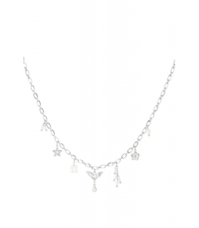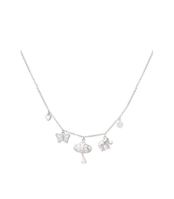 Deze zilverkleurige halsketting is voorzien van meerdere unieke hangertjes, wat zorgt voor een speelse en veelzijdige uitstraling. Het tijdloze zilverkleurige ontwerp maakt het een perfecte aanvulling op elke outfit. Wist je dat het combineren van verschillende hangers op één ketting een populaire trend is in de modewereld? Het stelt je in staat om je persoonlijke stijl en verhalen uit te drukken.