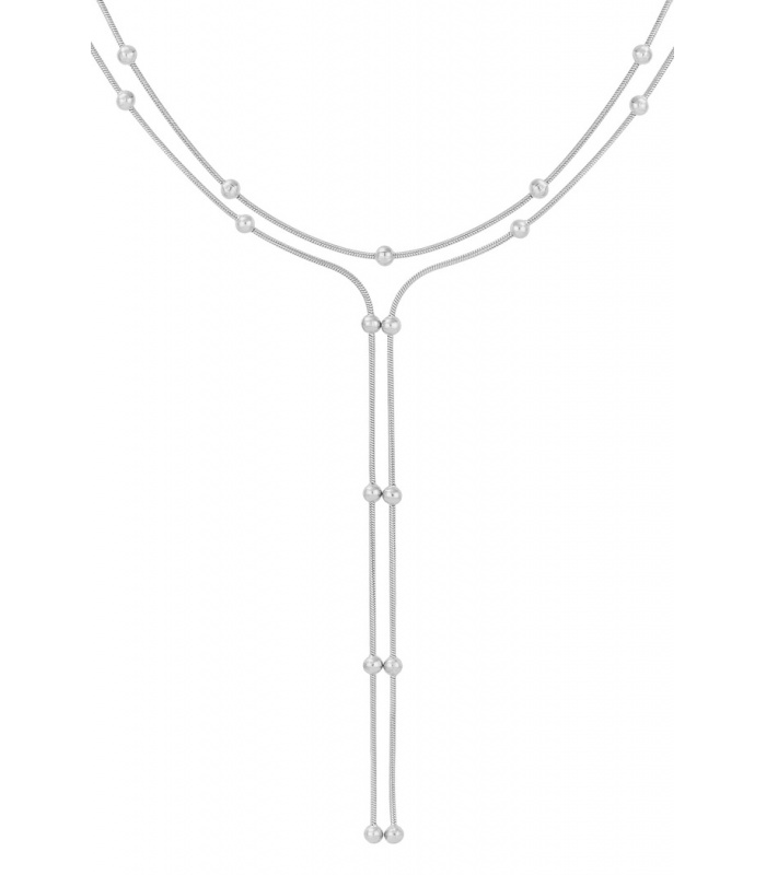 Deze zilverkleurige halsketting met kleine bolletjes biedt een verfijnde en minimalistische uitstraling. Het delicate ontwerp maakt het een veelzijdig sieraad dat zowel afzonderlijk als in combinatie met andere kettingen gedragen kan worden. De bolletjes voegen een subtiel accent toe aan je look, perfect voor zowel dagelijkse outfits als speciale gelegenheden.