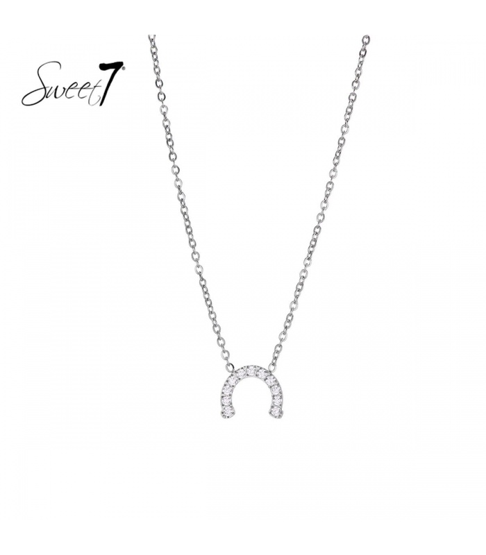 Zilverkleurige halsketting met hoefijzer van zirkoonsteentjes.
