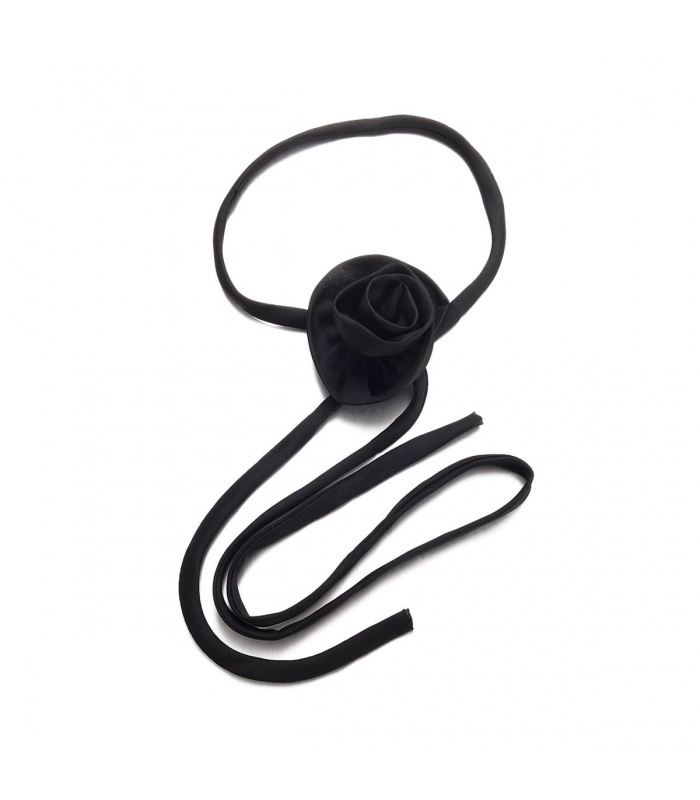 Is jouw outfit toe aan een stijlvol accent dat opvalt zonder te overdrijven? Deze halsketting met zwarte bloem combineert minimalisme met een high fashion touch. De zachte stof en lange linten geven een moderne en vrouwelijke uitstraling, perfect voor een chique avondlook of een verfijnde dagelijkse stijl.