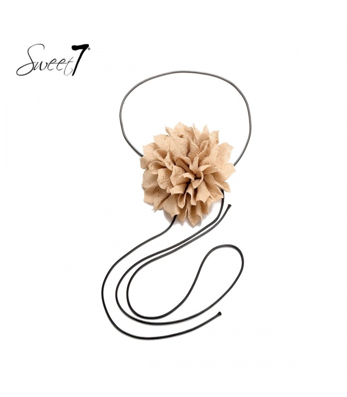 Ben je klaar om je stijl naar een hoger niveau te tillen? Deze zwarte koord halsketting met camel kleurige bloem is jouw kans! Creëer een statement look en laat je persoonlijkheid schitteren. Bestel nu en voeg dit opvallende sieraad toe aan je collectie.
