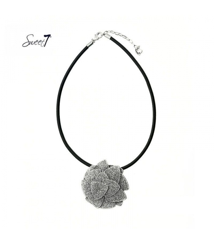 Zwarte koord halsketting met een mooie zilverkleurige hanger