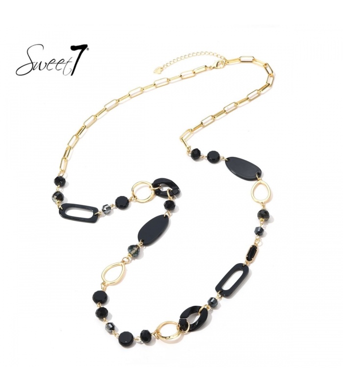 Hoe geef je elke outfit in een keer een stijlvolle upgrade? Deze halsketting combineert diepe zwarte accenten met goudkleurige schakels en open vormen. De asymmetrische indeling en mix van materialen zorgen voor een eigentijdse, luxe uitstraling. Perfect voor zowel overdag als s avonds.