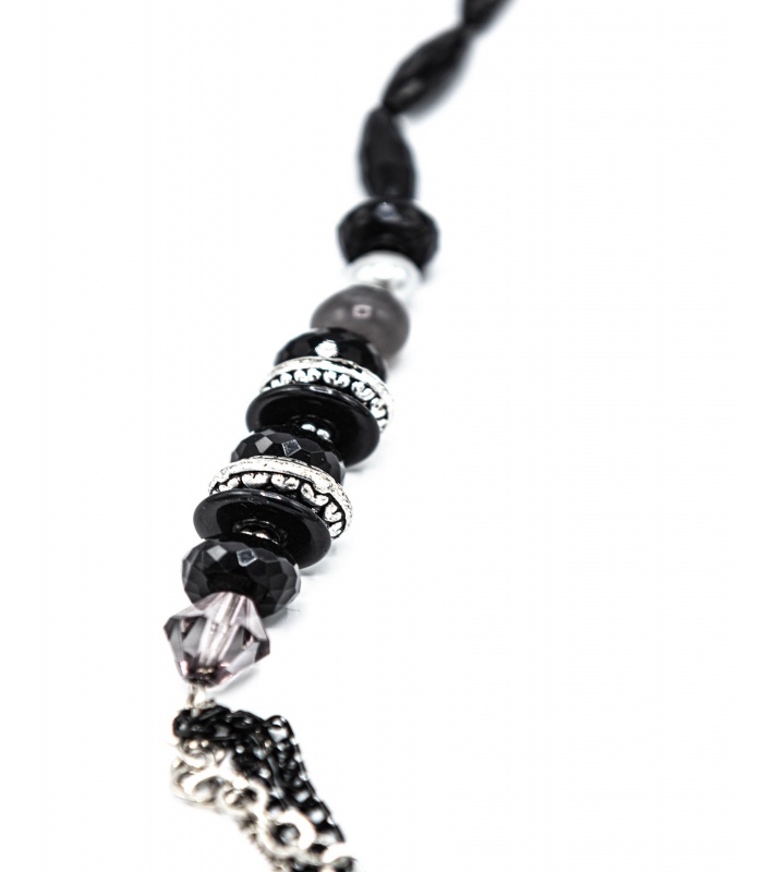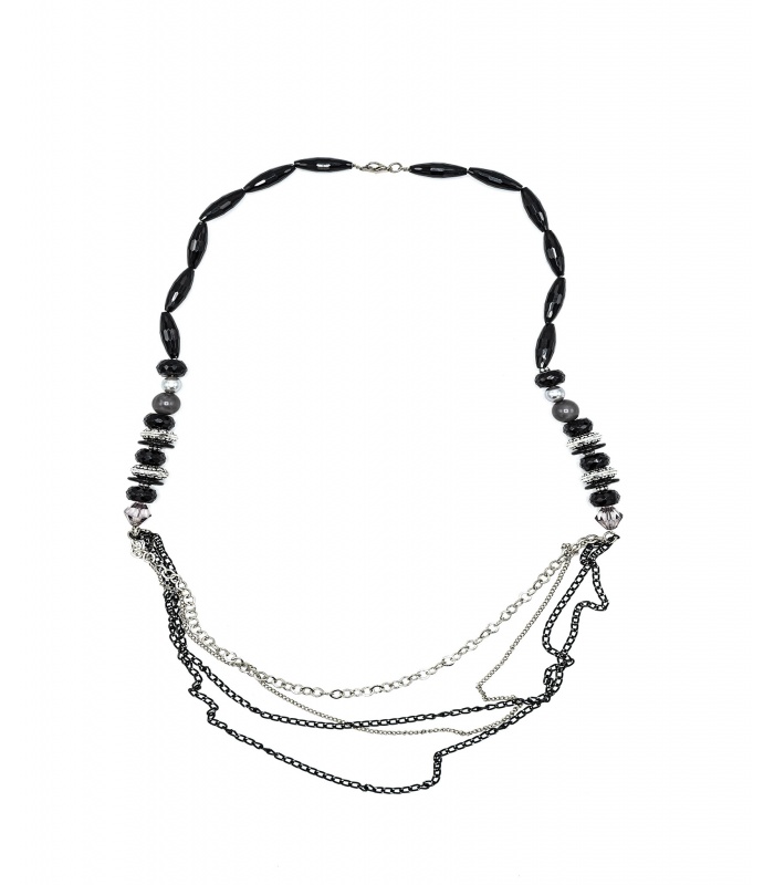Zwarte lange halsketting met facet geslepen kralen en kettingen.