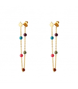 Langwerpige mooie oorhangers met vrolijk gekleurde invulling. De lengte van deze oorbel is circa 2,6 cm. Voor oren met gaatjes. De oorbellen zijn nikkelvrij. De oorbellen zijn voorzien van stoppertjes.