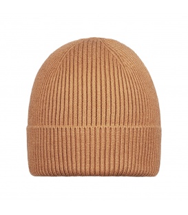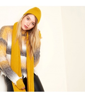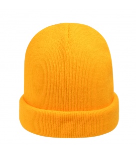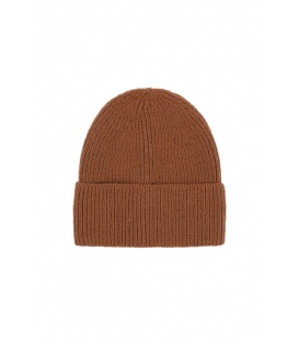 Oranjewarme beanie. De afmetingen van de beanie is 23 cm bij 22 cm. De sjaal is gemaakt van polyester.