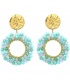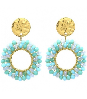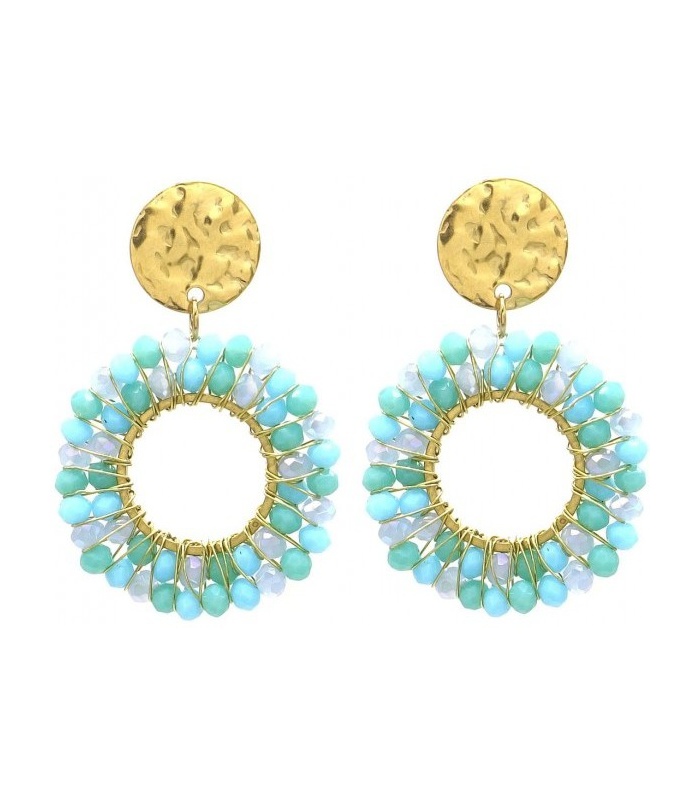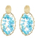 Blauw gekleurde glaskralen met een bewerkt goudkleurig oorstukje.