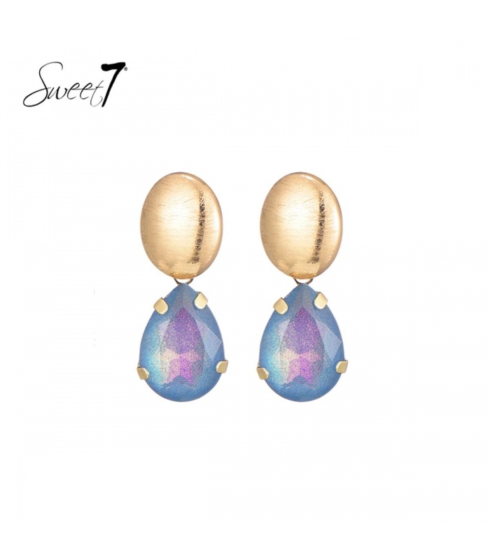 Wil je opvallen met een unieke kleurcombinatie? Deze oorbel met druppelvormige steen in blauw-paars effect trekt direct de aandacht. Het subtiele kleurverloop geeft een dromerig, iriserend effect dat prachtig combineert met de matte, goudkleurige bovenkant. Een perfecte match voor zowel denim als avondwear.