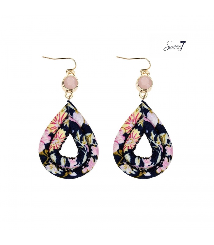 De blauw gekleurde stoffen oorhangers van het merk Sweet7 zijn een unieke en opvallende aanvulling op elke garderobe. Deze oorhangers zijn gemaakt van stof en zijn voorzien van een prachtige bloemenprint en een kleine steen. Dit maakt ze perfect voor zowel casual als formele gelegenheden.
