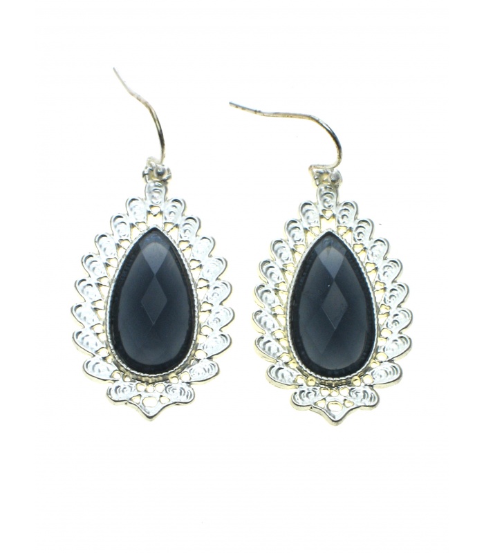 Oorbellen met blauwe facet steen en een mooie zilverkleurige rand