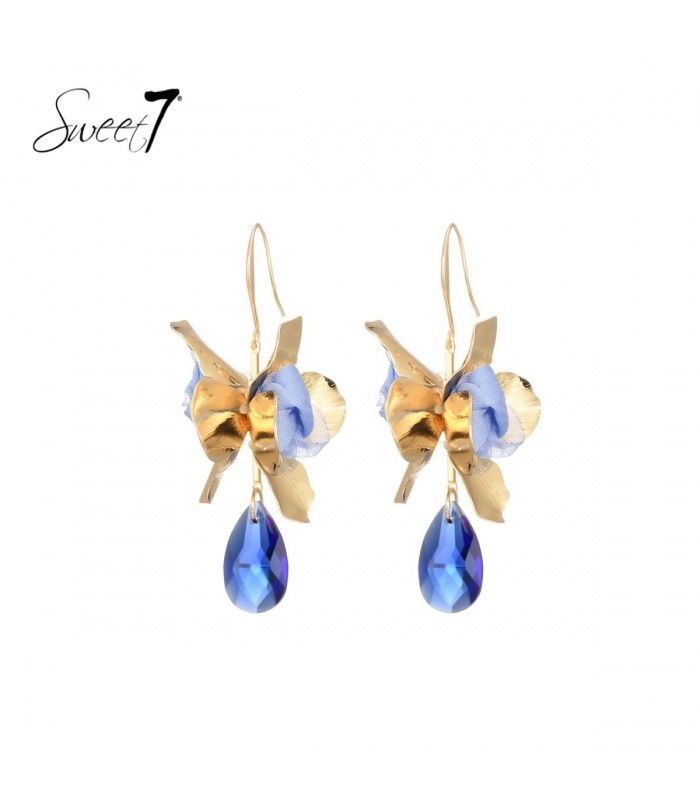 Voeg een vleugje elegantie toe aan je look met deze schitterende blauwe oorhangers. De oorbellen zijn voorzien van een subtiel goudkleurig detail dat zorgt voor een luxe uitstraling. Het contrast tussen het blauw en het warme goud maakt deze oorbellen een echte eyecatcher.