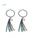 Blauwe oorringen met gekleurde strengen van stof en een harte bedel.