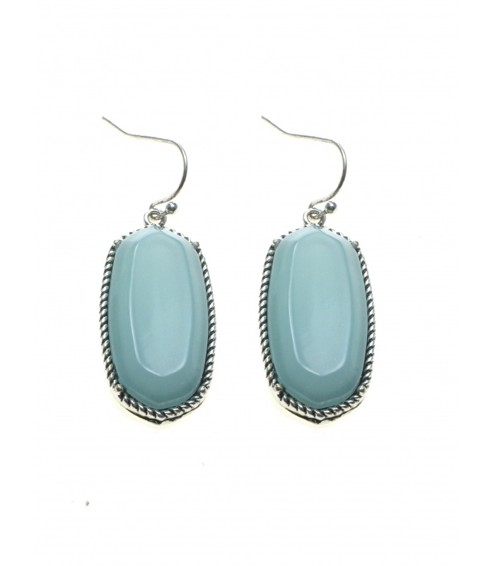 Blauwe ovale oorbellen in zilverkleurige zetting.