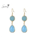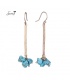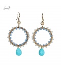 Goudkleurige oorhangers met blauwe parelmoer stukjes.