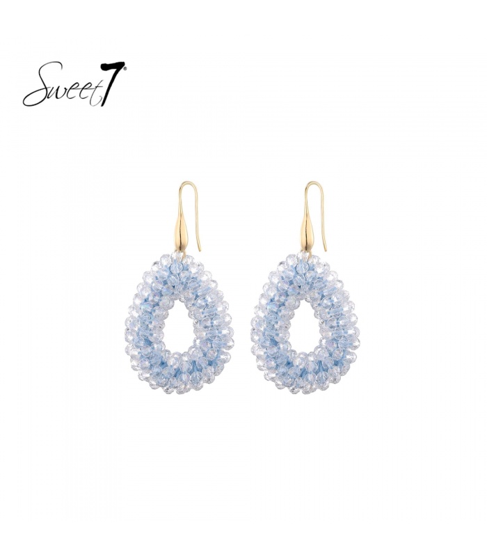 Deze oorbel geeft een frisse, vrouwelijke uitstraling door lichtblauwe kralen en een open druppelvorm. Perfect als statement oorbellen of subtiele mode oorbellen voor dagelijks gebruik.