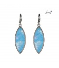 Oorhanger met ronde hanger van kleine kralen met daaraan een langwerpige blauwe steen