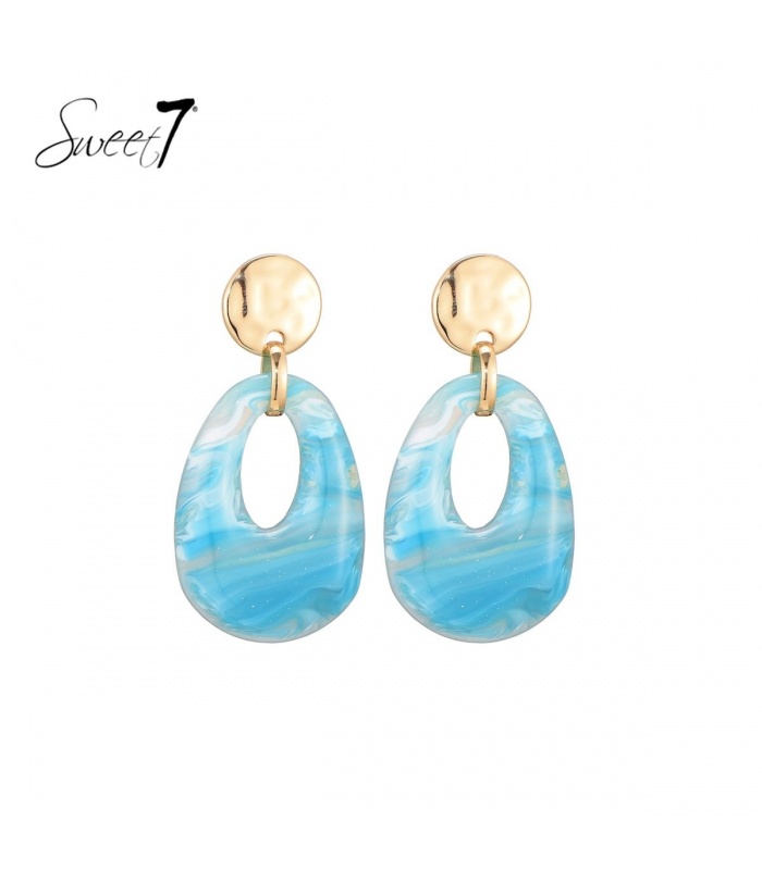 Turquoise oorhangers brengen een frisse en levendige uitstraling. Het gemêleerde patroon geeft elke oorbel een unieke look. Het goudkleurige oor stukje voegt een vleugje elegantie toe, waardoor deze oorbellen perfect zijn voor zowel casual als chique gelegenheden.
