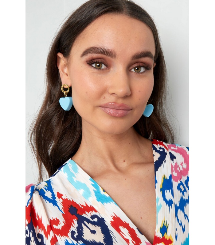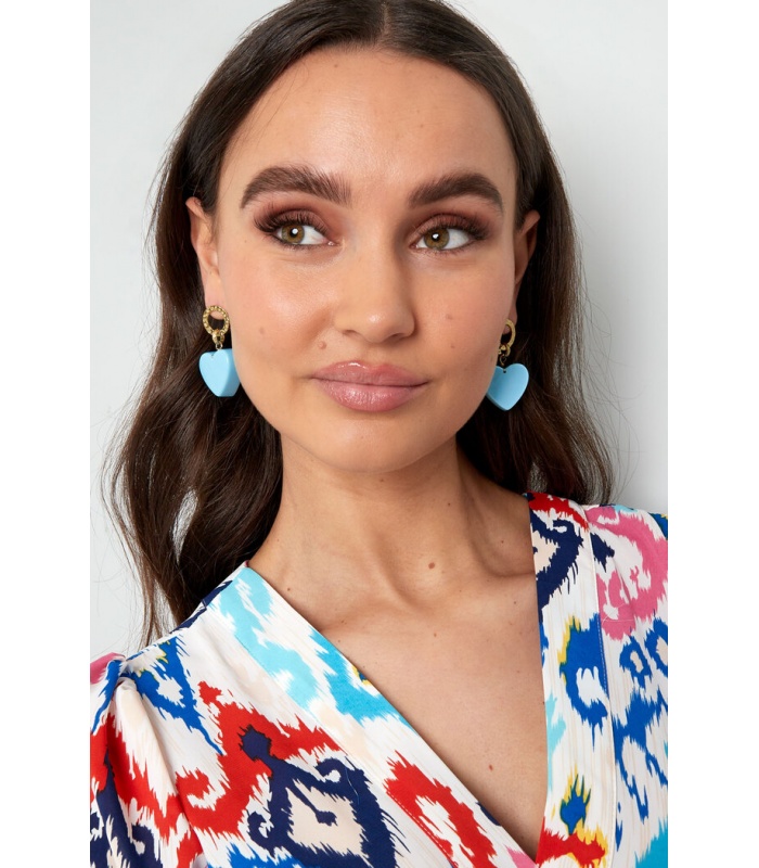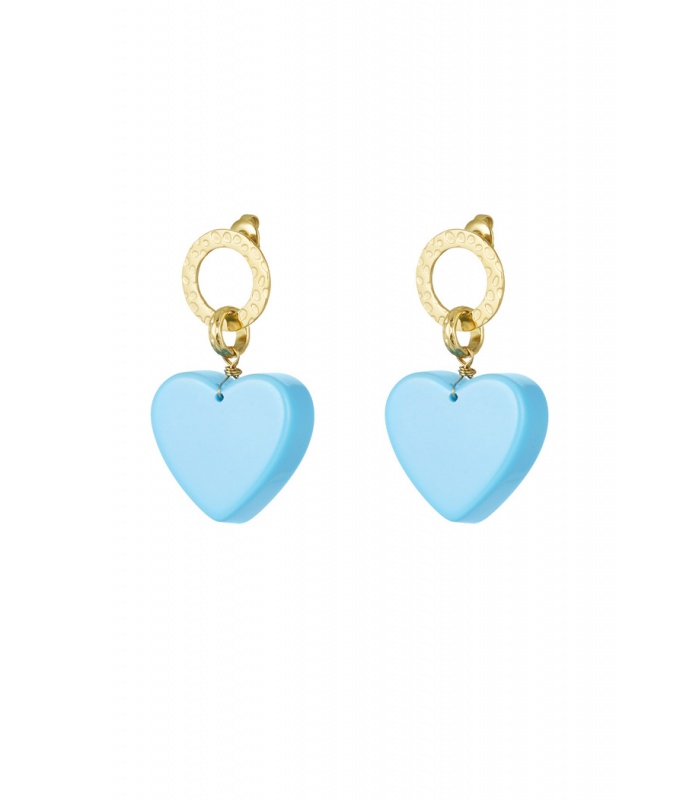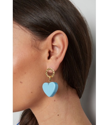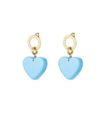 Licht blauwe harten oorhangers met een goudkleurig oor stukje.