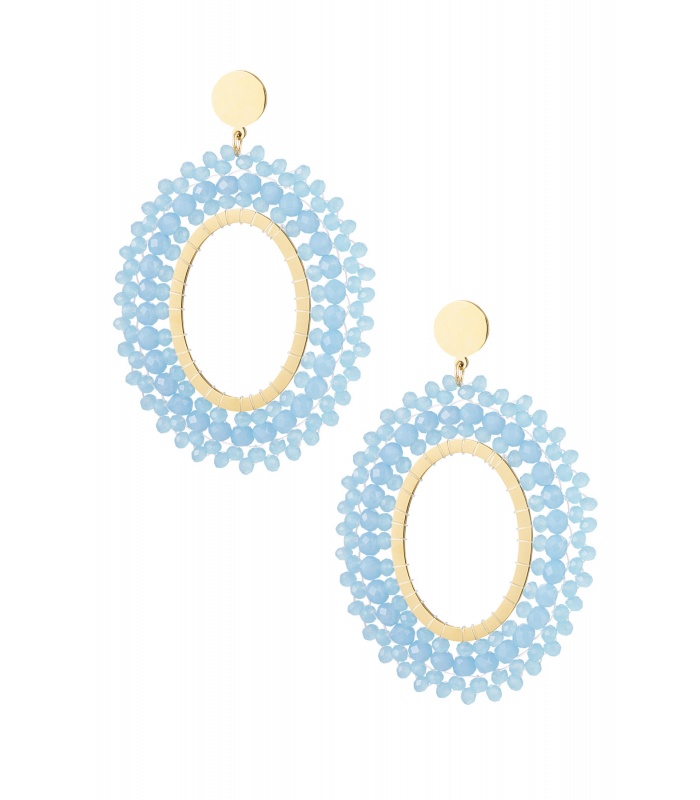 De kralen zijn zorgvuldig gekozen en afgewerkt om een oorbel te creëren die zowel trendy als tijdloos is. Het lichtblauwe kleurenschema past perfect bij het seizoen en is veelzijdig genoeg om bij bijna elke outfit te dragen. De kralen zijn opgebouwd uit drie lagen, waardoor ze een prachtige diepte en dimensie hebben.