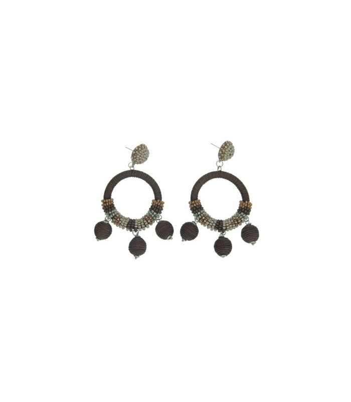 Bruin gekleurde oorbellen met ronde hanger en kralen
