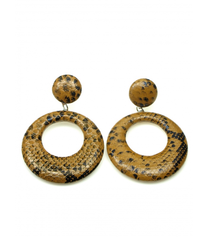 Bruine oorbellen met slangen print.
