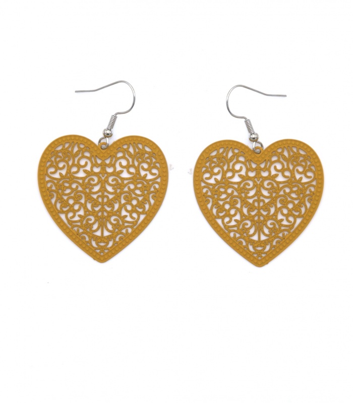 Camelkleurige hartenoorbellen met open motief. Deze oorbellen combineren een warme camel tint met een verfijnd open hartdesign. Het open motief geeft een luchtige uitstraling, perfect voor een subtiele statement. Ideaal voor zowel casual als chique outfits.